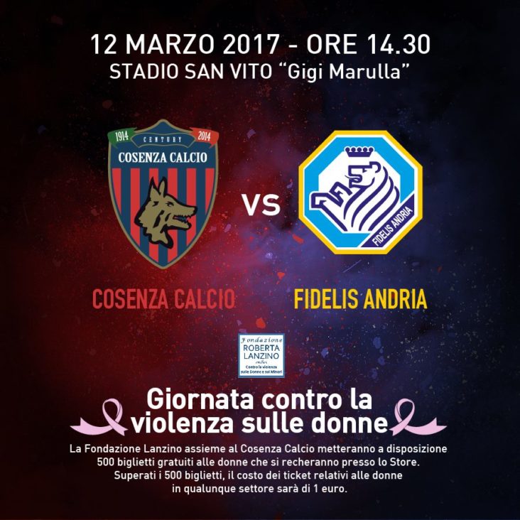 In occasione della gara tra Cosenza e Fidelis Andria di domenica 12 marzo 2017 alle ore 14:30, la Società mette a disposizione delle donne centinaia di tagliandi omaggio in diversi settori.