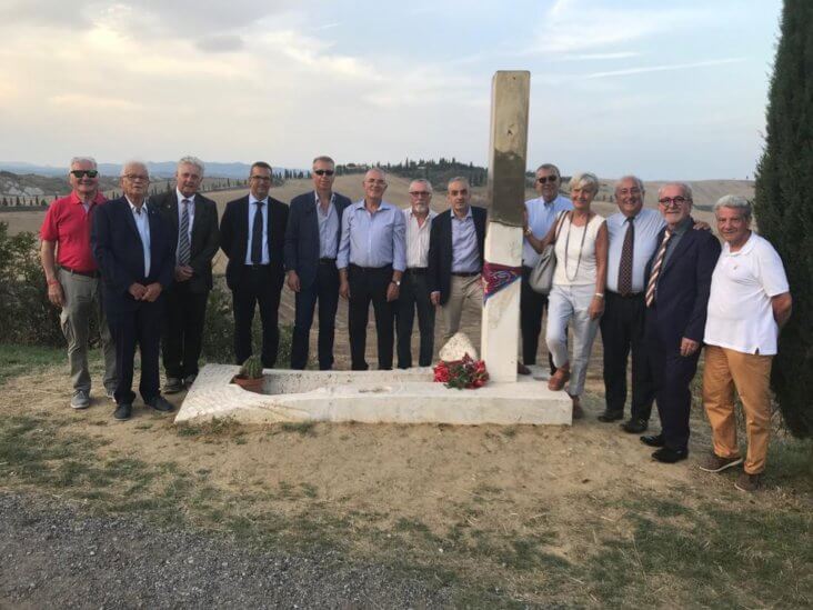 La giornata dedicata ad Artemio Franchi si è conclusa al cippo, nel posto sulla via Lauretana, in corrispondenza della curva che pose fine alla vita del dirigente sportivo e capitano della Contrada della Torre.